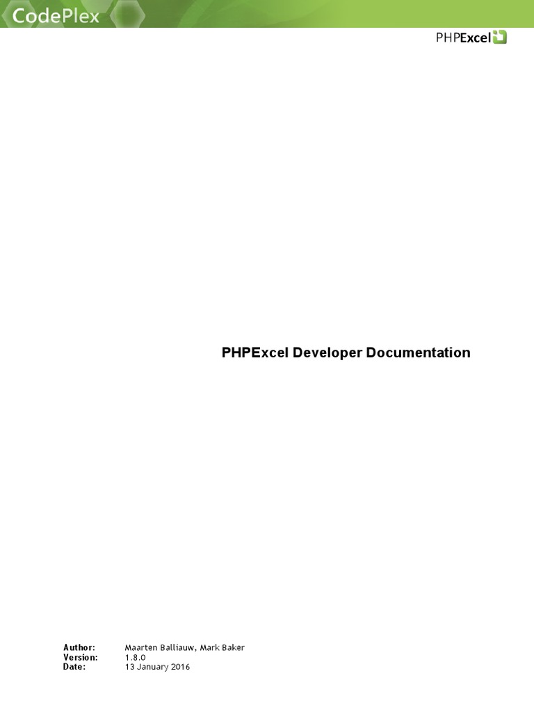 PHPExcel Developer Documentation