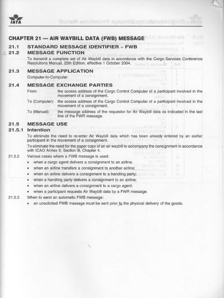 21.6.3 This example illustrates an airline to cargo community system message indicating: