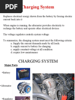 - Main alternator has a rotating field coil and stationary armature (magnets)