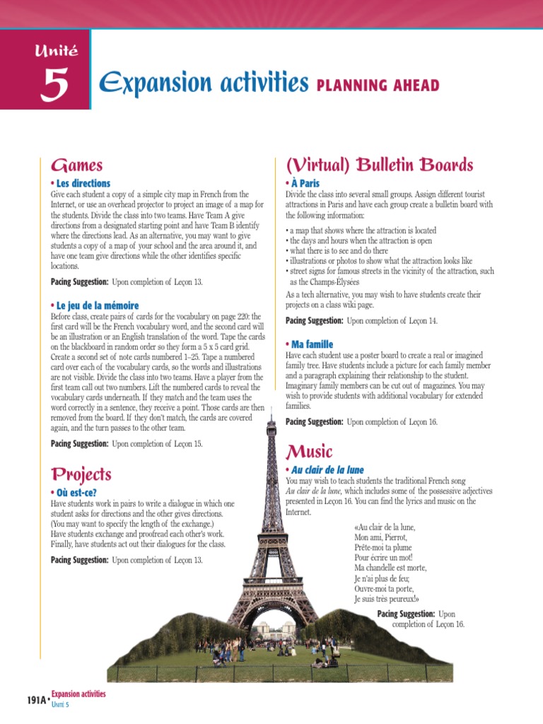 • Une mini-histoire Pacing Suggestion: Upon completion of Leçon 14.