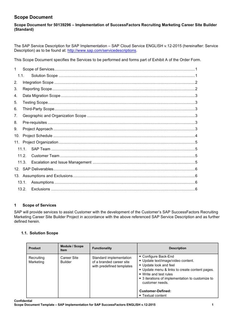 Scope Document Template – SAP Implementation for SAP SuccessFactors ENGLISH v.12-2015 1