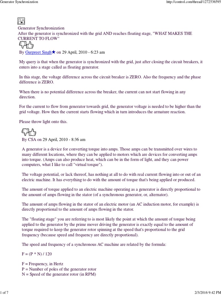 And, when a generator breaker is closed, connecting the generator to the grid in parallel with other