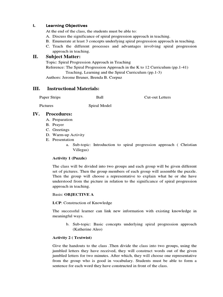 1. Is spiral progression approach in teaching applicable to K TO 12 Curriculum?