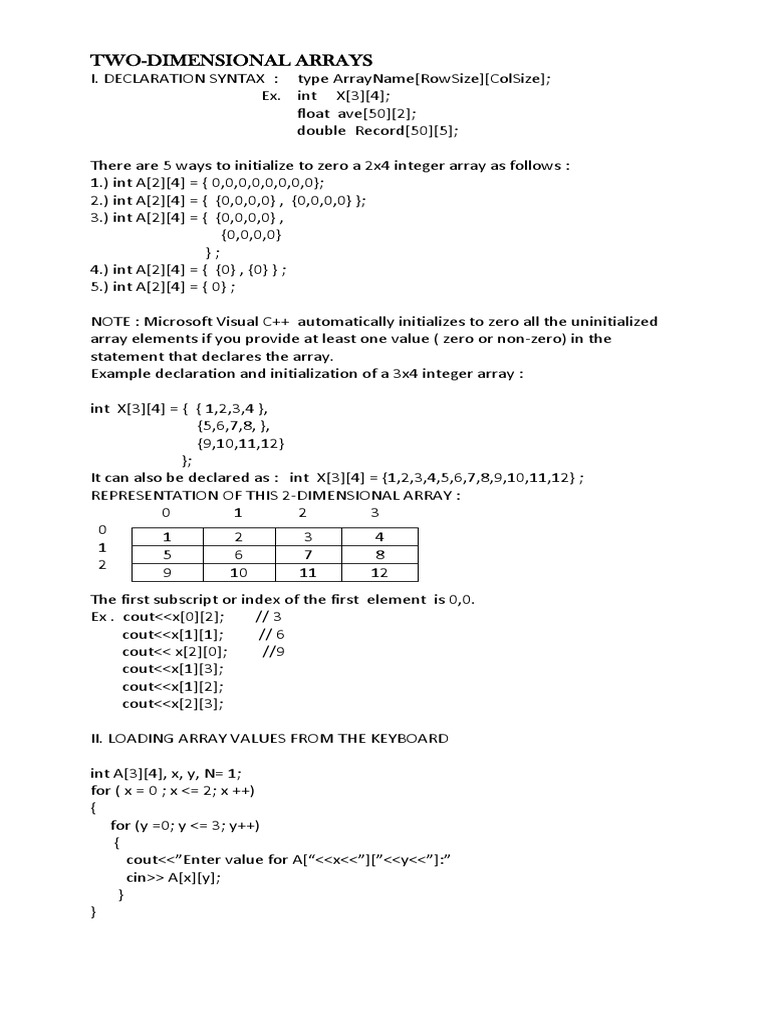 II. LOADING ARRAY VALUES FROM THE KEYBOARD