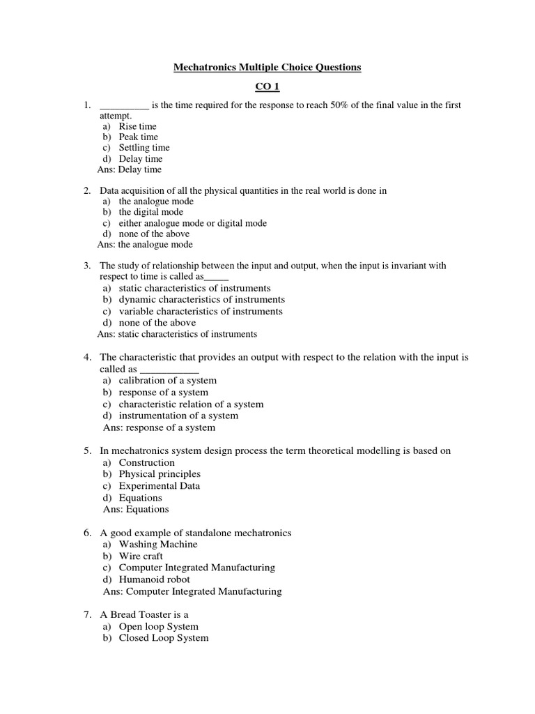 Mechatronics Multiple Choice Questions