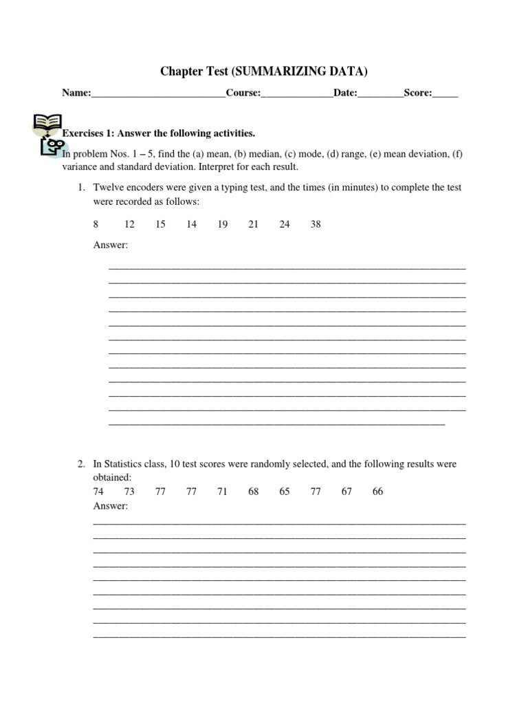 1. Twelve encoders were given a typing test, and the times (in minutes) to complete the test
