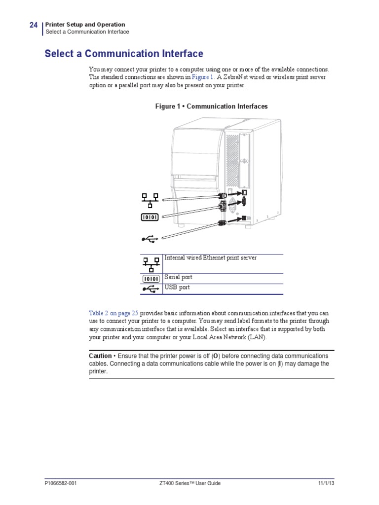 The standard connections are shown in Figure 1. A ZebraNet wired or wireless print server