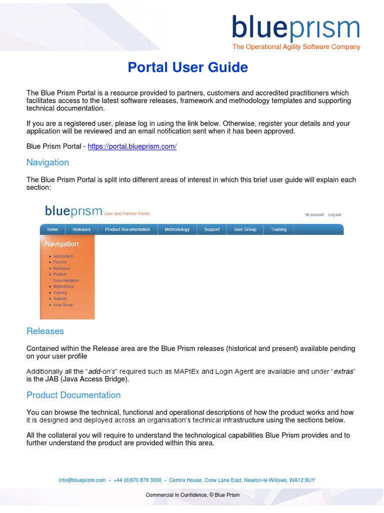 The Blue Prism Portal is a resource provided to partners, customers and accredited practitioners which