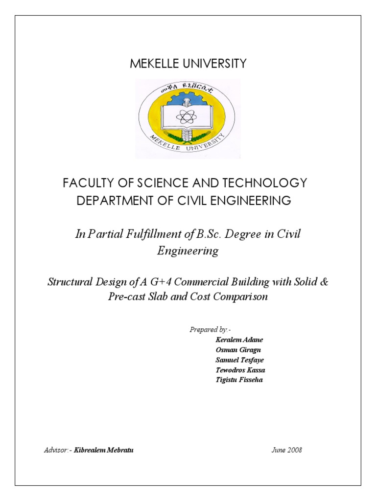 cost estimation & comparison for each staff. The building is located in Mekelle city. The
