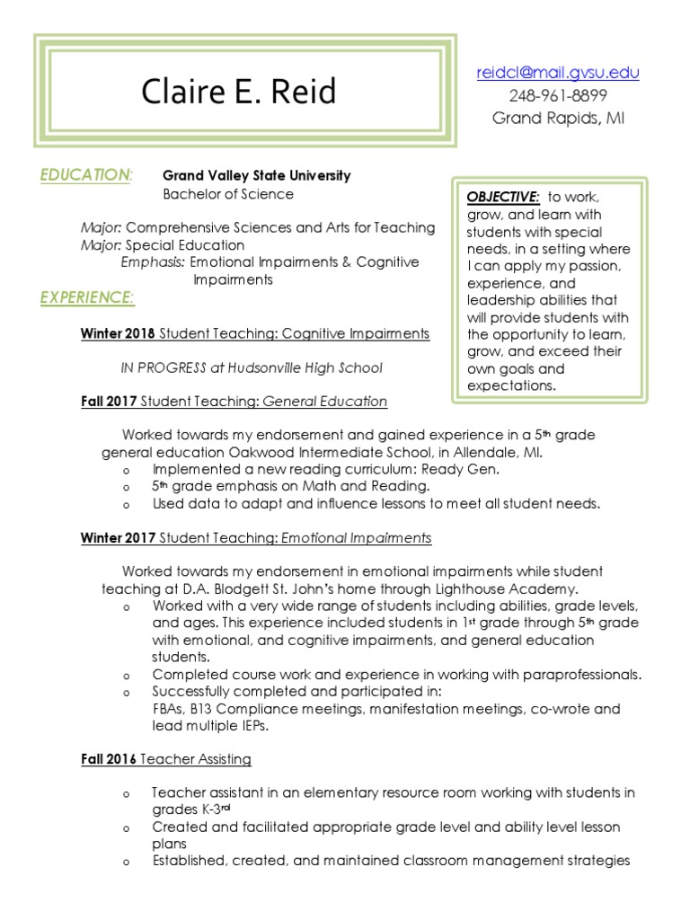 Winter 2018 Student Teaching: Cognitive Impairments the opportunity to learn,