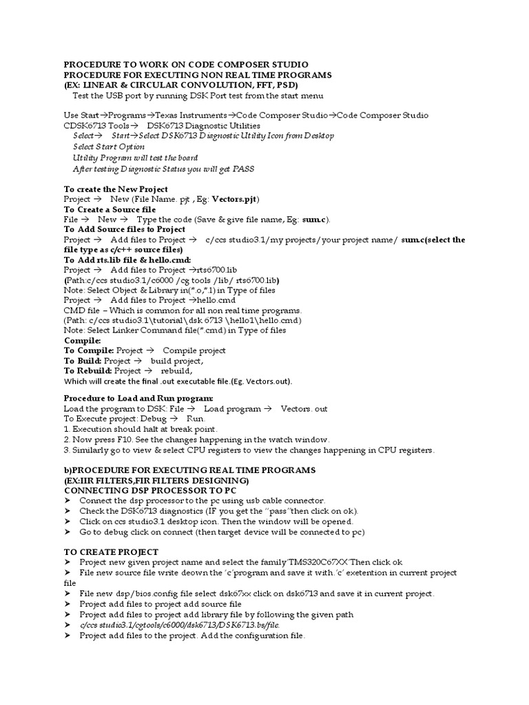 PROCEDURE TO WORK ON CODE COMPOSER STUDIO