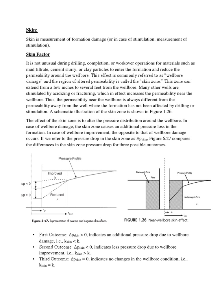 • Second Outcome: Δpskin < 0, indicates less pressure drop due to wellbore