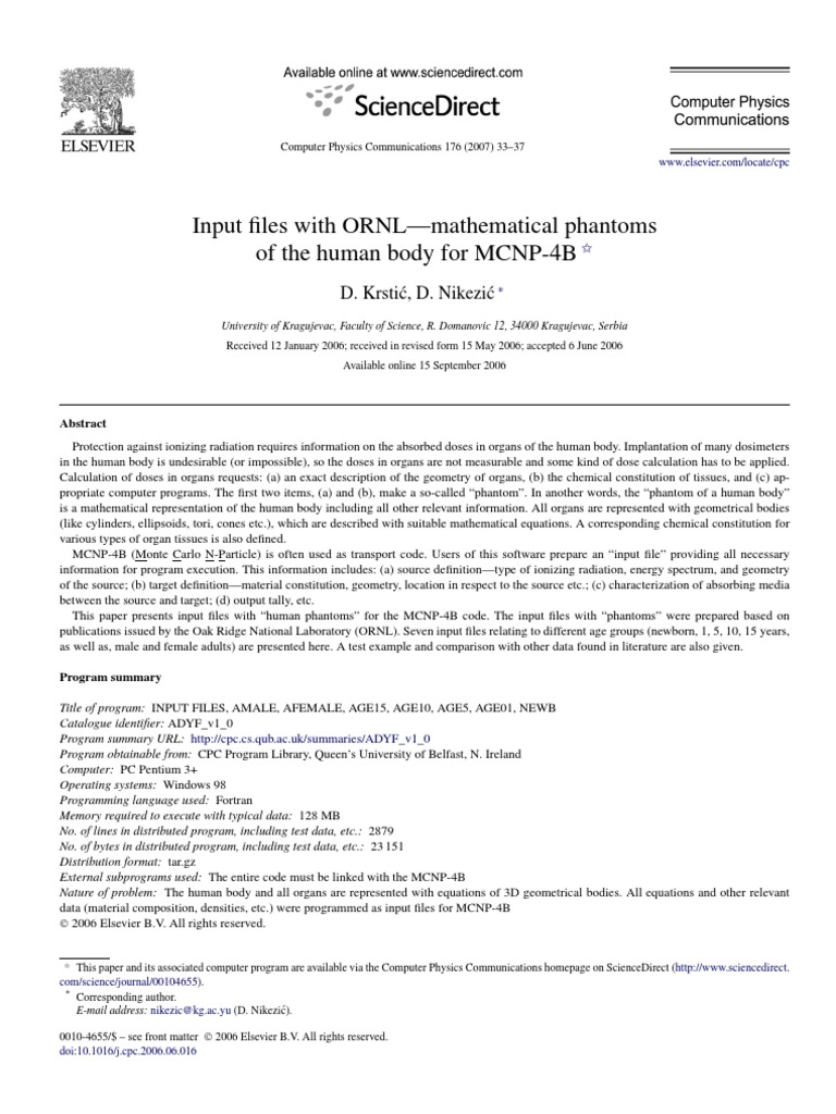 In this work input files for MCNP-4B with seven phan- Summer School on Radiation Protection, in: Radiation Dosimetry, vol. 1,