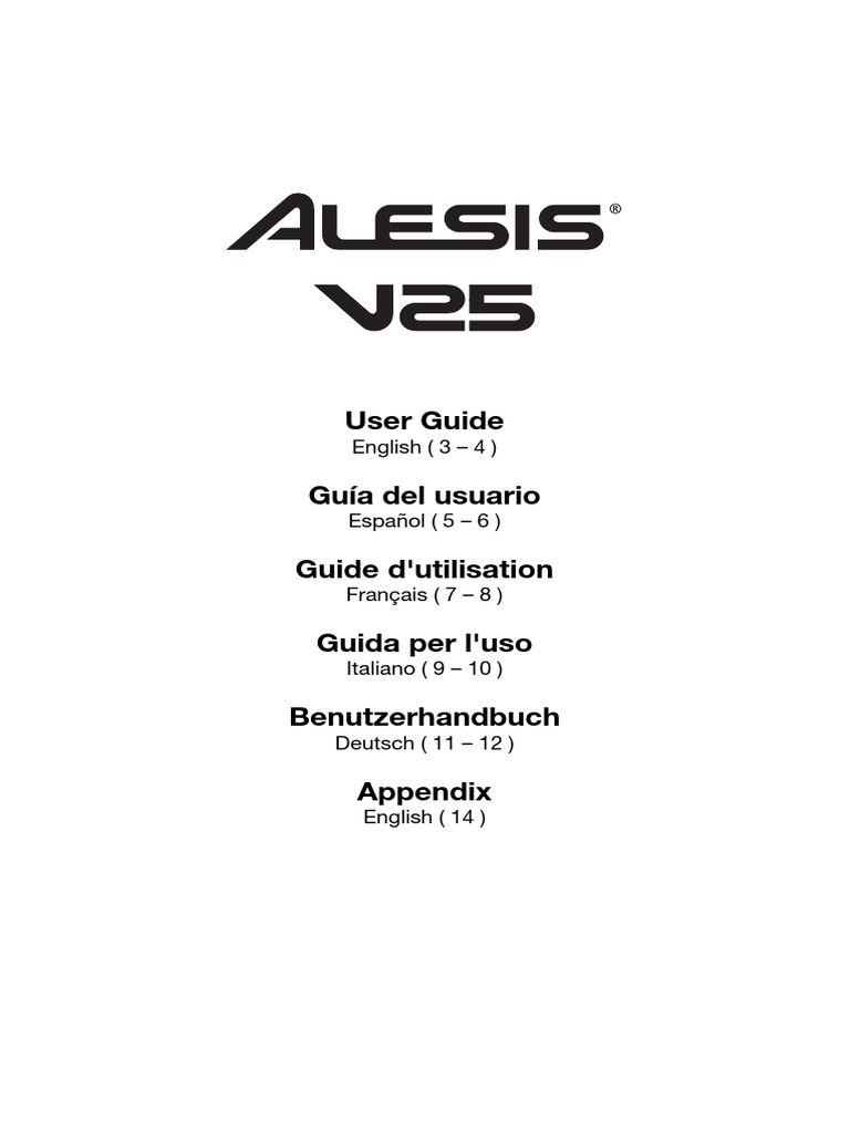 compatibilidad, etc) y registro del producto, visite alesis.com/v25.