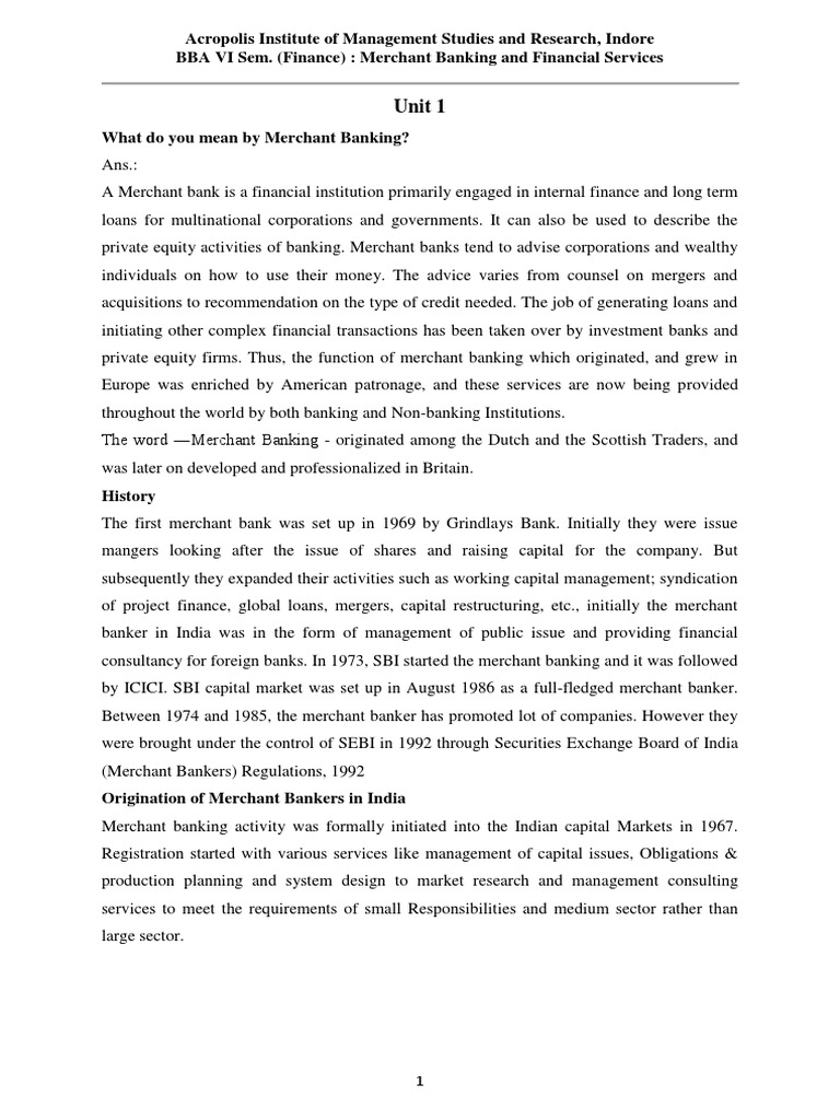 BBA VI Sem. (Finance) : Merchant Banking and Financial Services