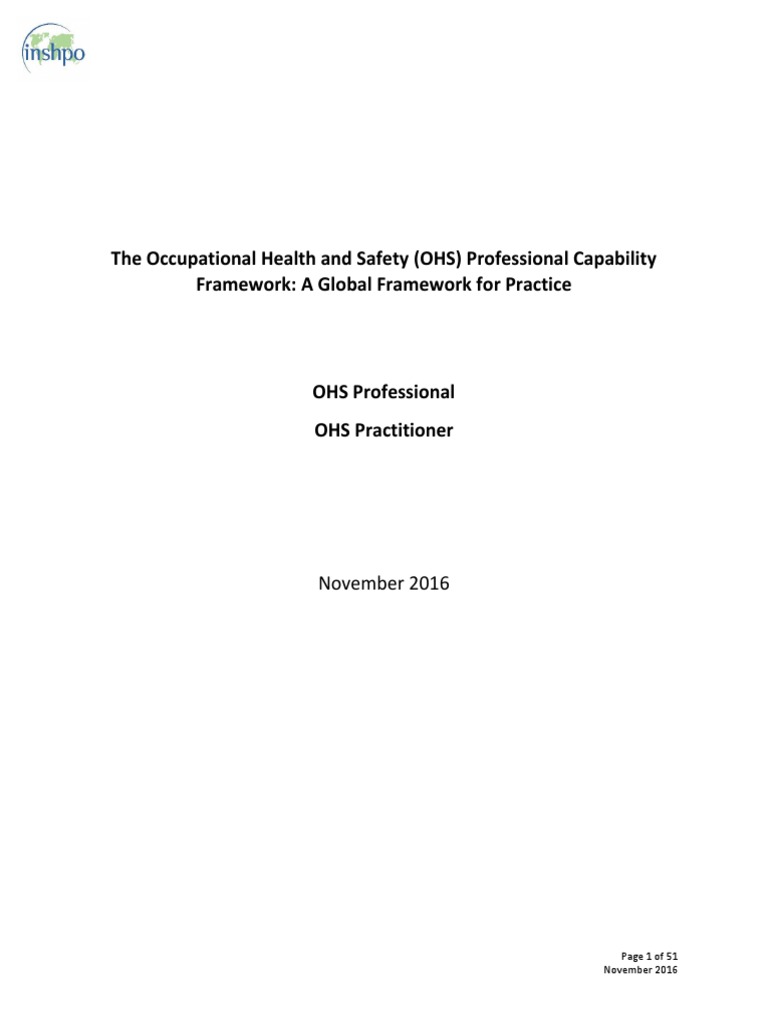 (INSHPO) initiated the development of the Occupational Health and Safety (OHS) Capability Framework.