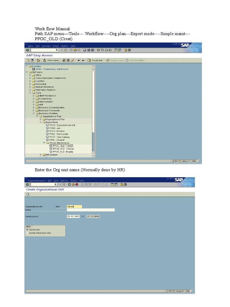 Path:SAP menu—Tools--- Workflow----Org plan---Expert mode----Simple maint---