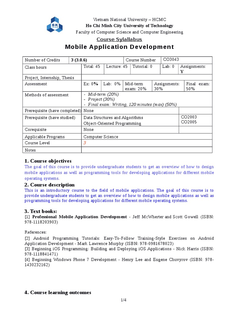 4. Course learning outcomes