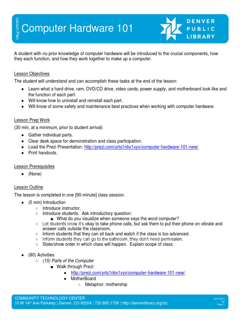 ● Load the Prezi Presentation: http://prezi.com/yrts1nbv1xyv/computer-hardware-101-new/