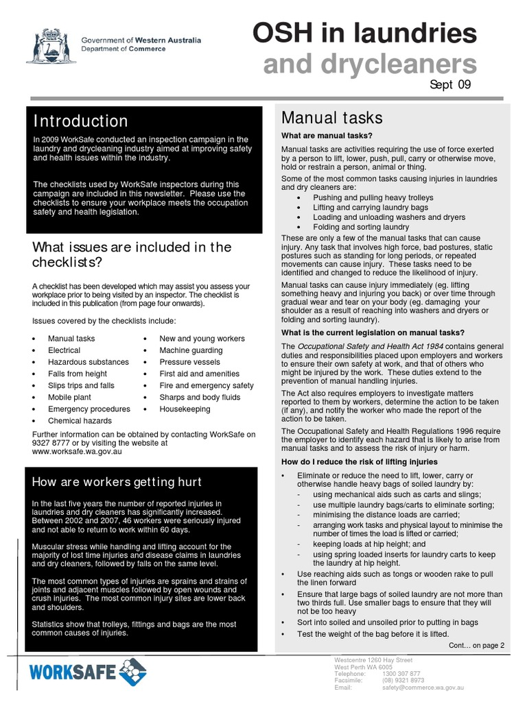 laundry and drycleaning industry aimed at improving safety Manual tasks are activities requiring the use of force exerted