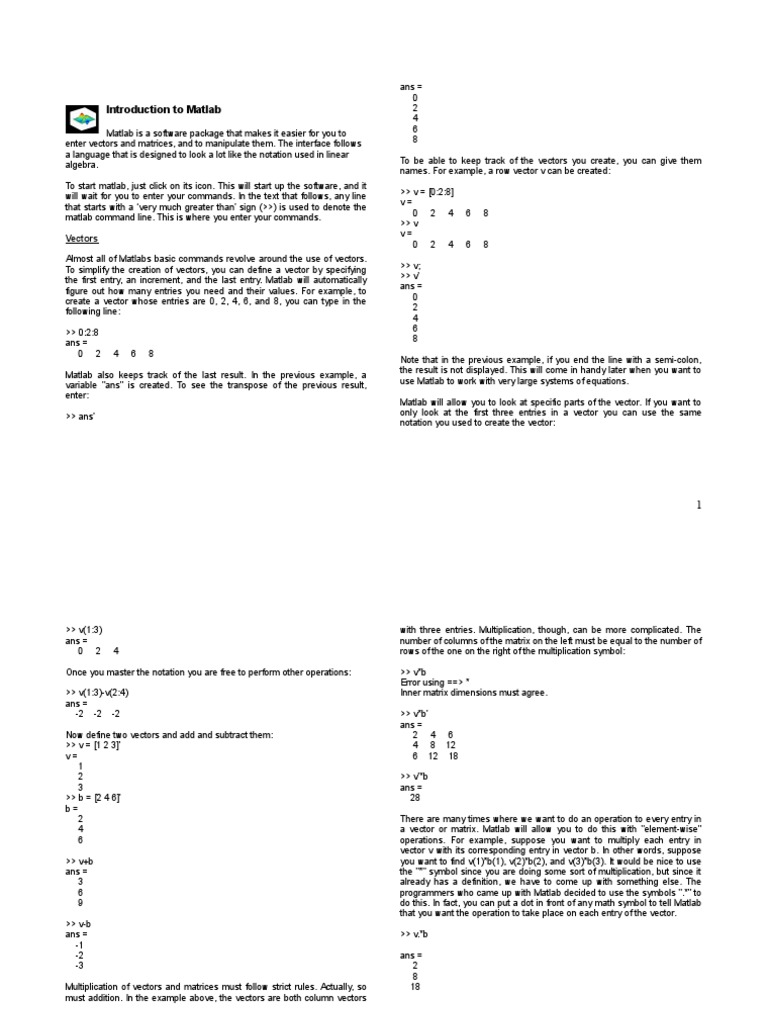 Almost all of Matlabs basic commands revolve around the use of vectors.