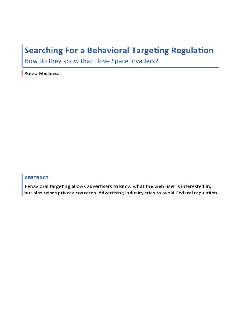 Searching For a Behavioral Targeting Regulation Xurxo Martínez