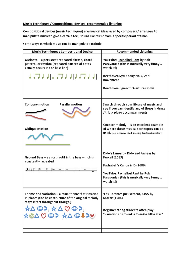 Compositional devices (music techniques) are musical ideas used by composers / arrangers to