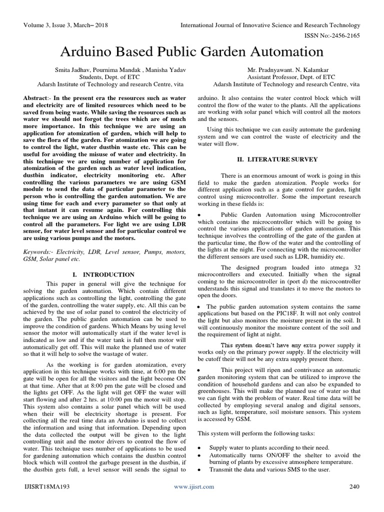 person who is controlling the garden automation. We are control using microcontroller. Some the important research