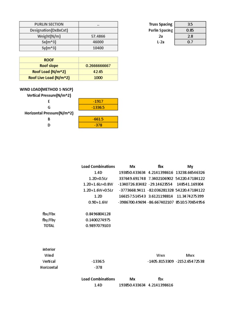 Designation(DxBxCxt) Purlin Spacing 0.85