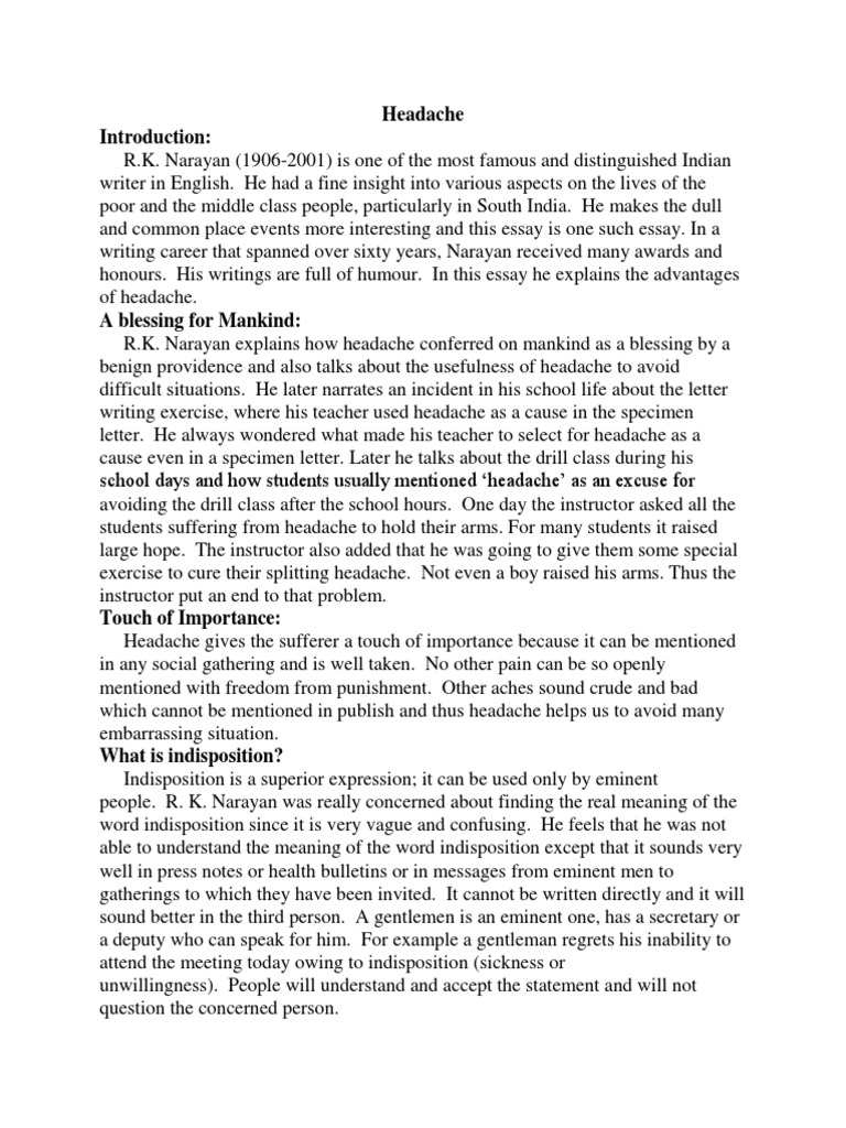 R.K. Narayan explains how headache conferred on mankind as a blessing by a