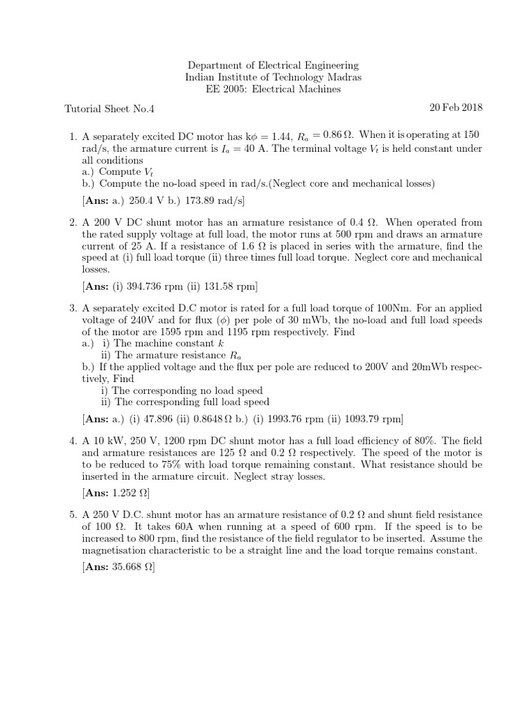 3. A separately excited D.C motor is rated for a full load torque of 100Nm. For an applied