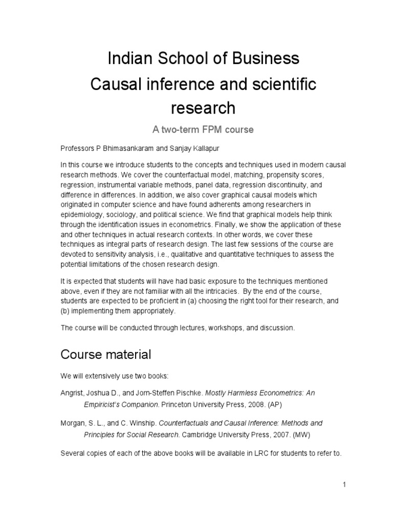 research methods. We cover the counterfactual model, matching, propensity scores,