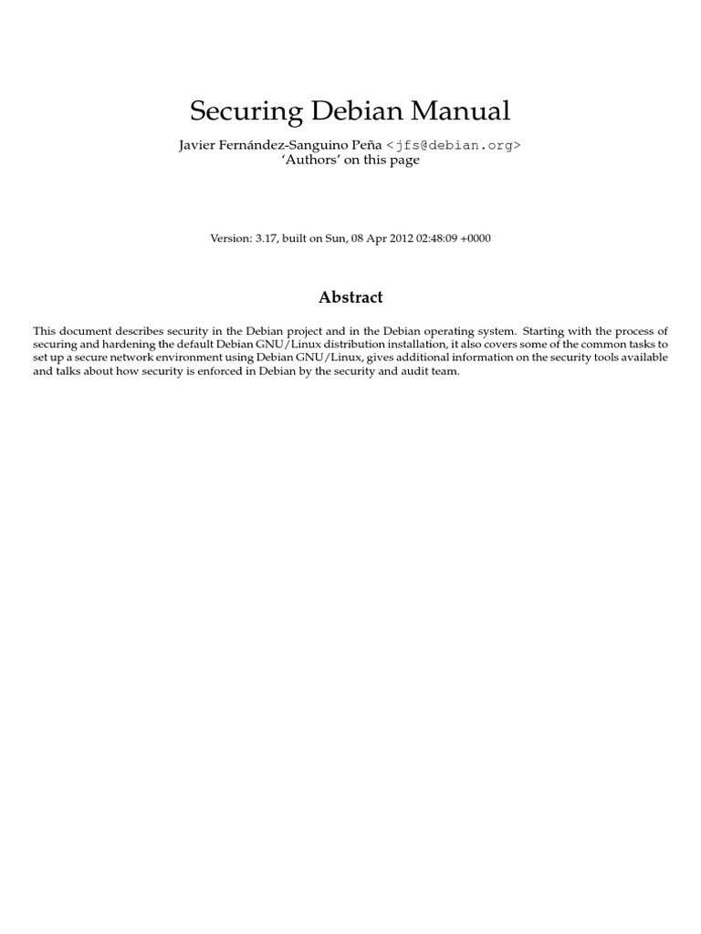 This document describes security in the Debian project and in the Debian operating system. Starting with the process of