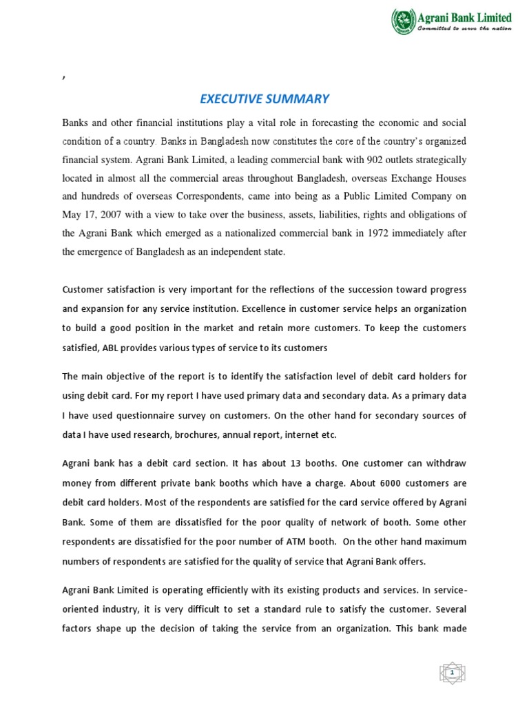 The main objective of the report is to identify the satisfaction level of debit card holders for