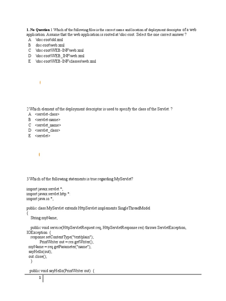 No Question 1 Which of the following files is the correct name and location of deployment descriptor of a web