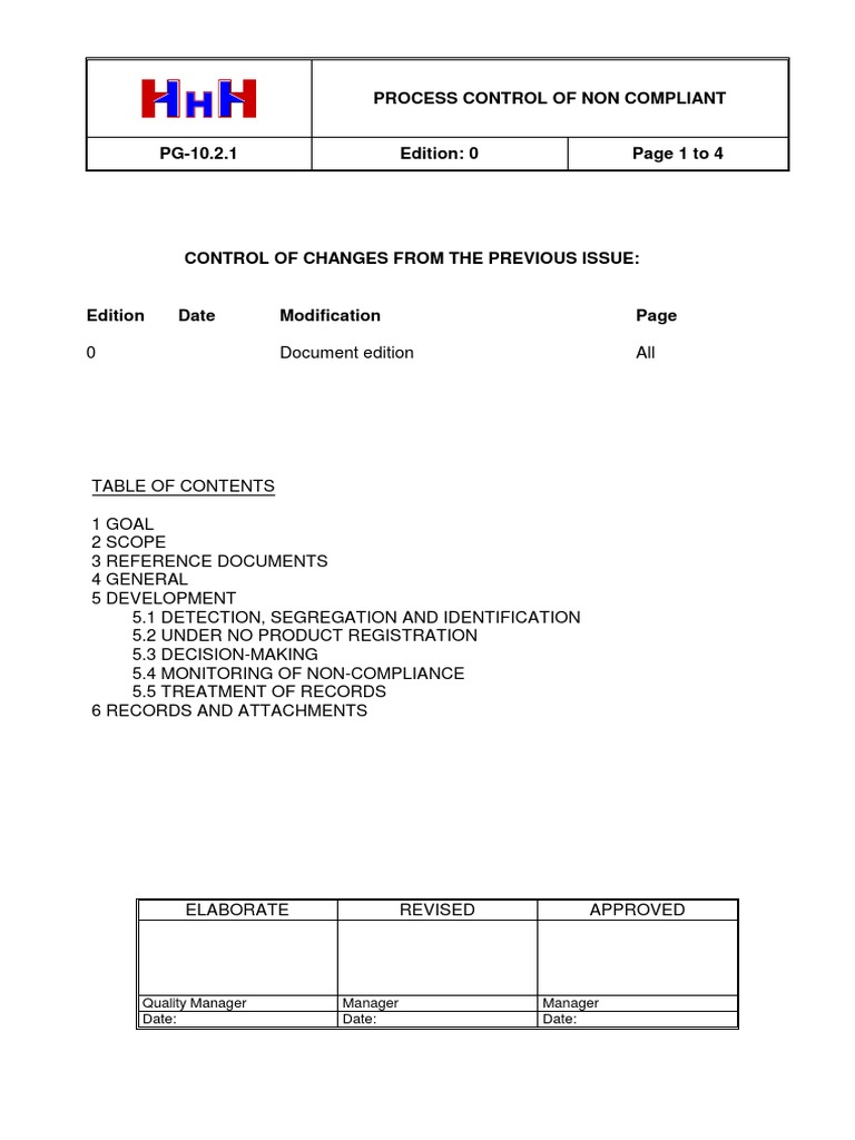 Anyone in HHH, S.L. can detect a nonconforming product, although normally it is