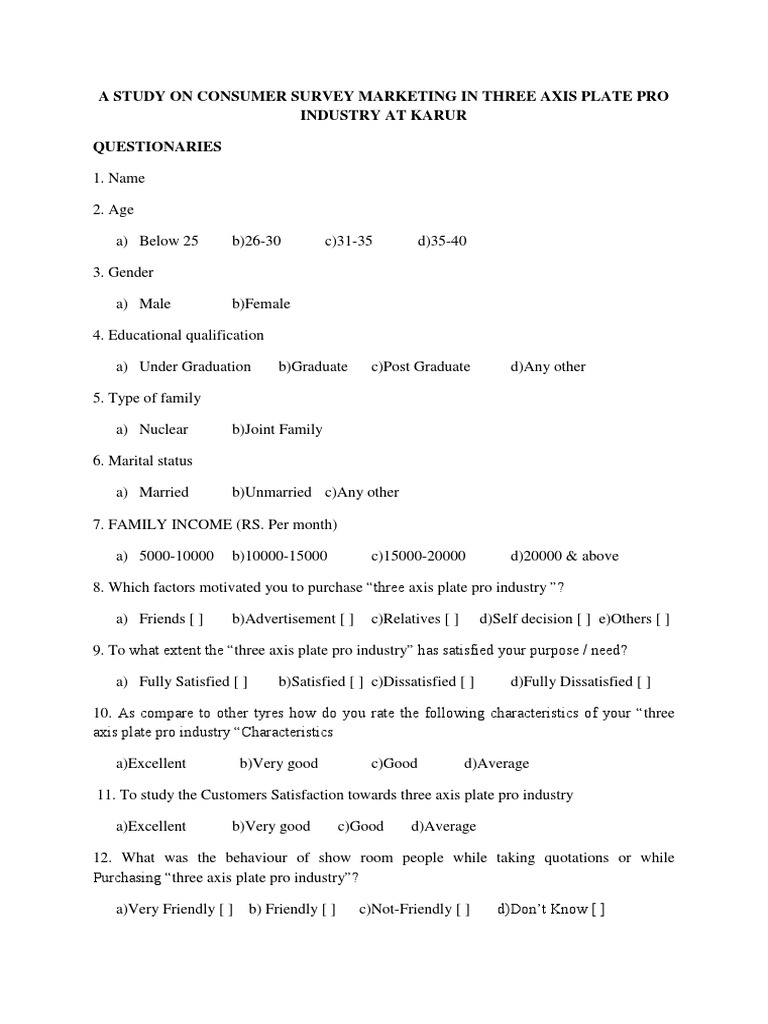 A STUDY ON CONSUMER SURVEY MARKETING IN THREE AXIS PLATE PRO