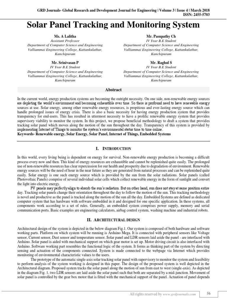 Keywords- Renewable energy, Solar Energy, Solar Panel, Internet of Things, Embedded Systems