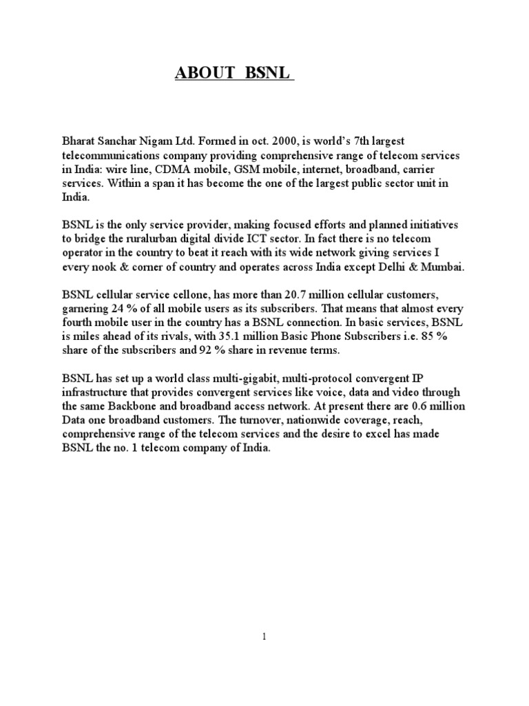 Bharat Sanchar Nigam Ltd. Formed in oct. 2000, is world’s 7th largest