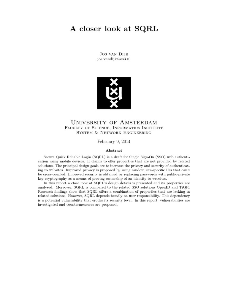 A Closer Look at SQRL: University of Amsterdam