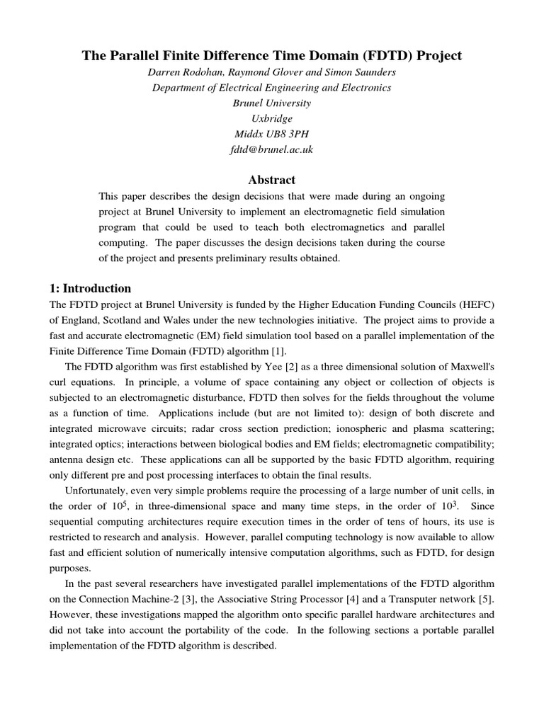 The FDTD project at Brunel University is funded by the Higher Education Funding Councils (HEFC)