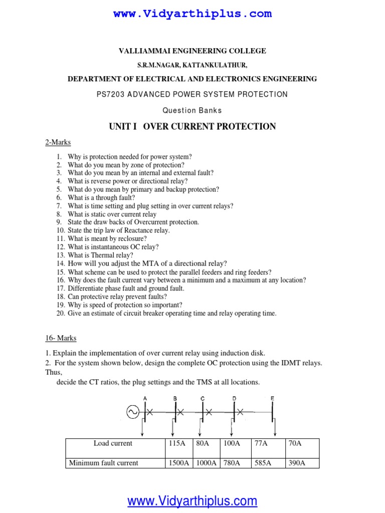 2. For the system shown below, design the complete OC protection using the IDMT relays.