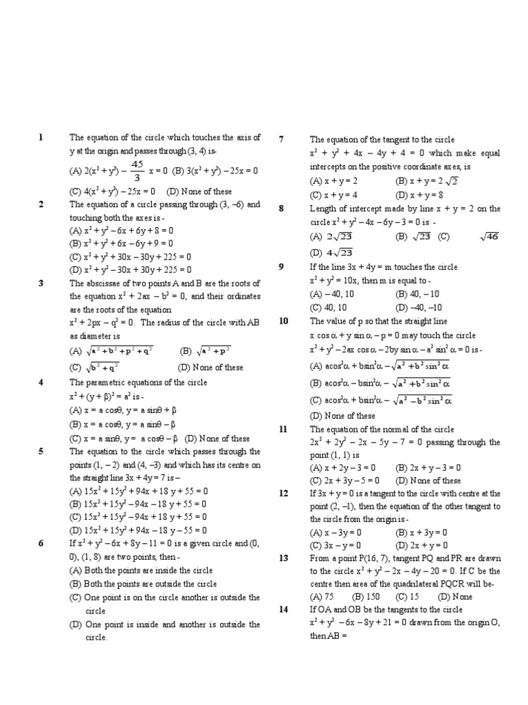 19 The tangents drawn from origin to the circle 28 The equation of the circle passing through the origin
