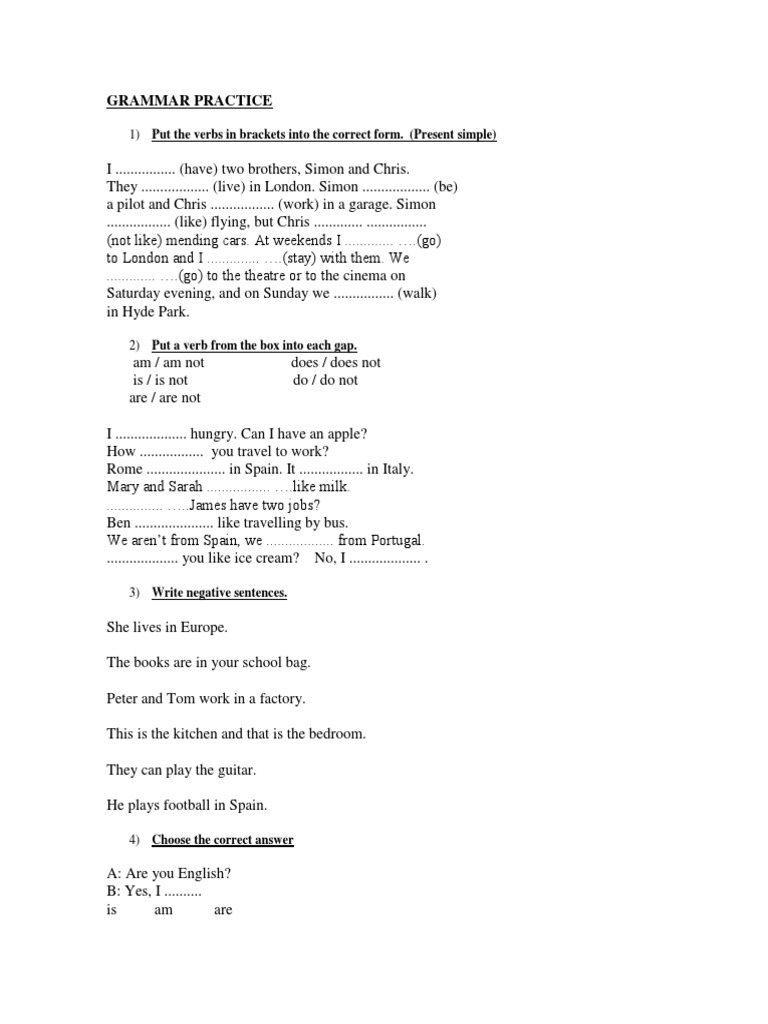 6. I (be, not) …………………….. rich. I (have, not) …………………… money.