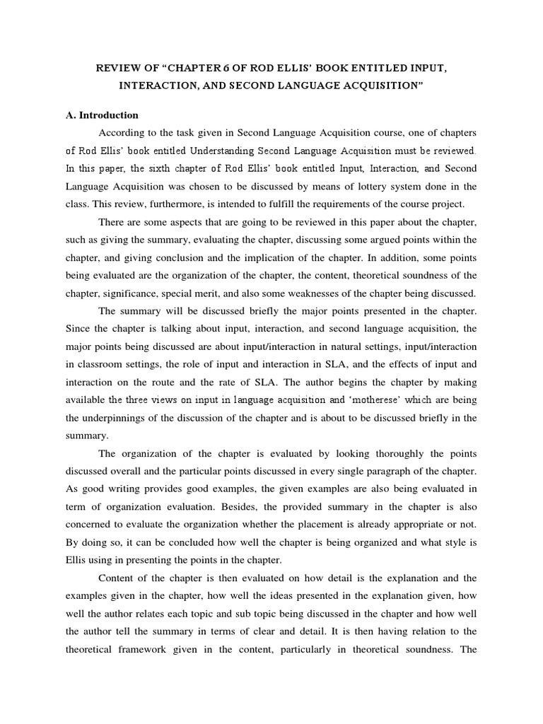 of Rod Ellis’ book entitled Understanding Second Language Acquisition must be reviewed.