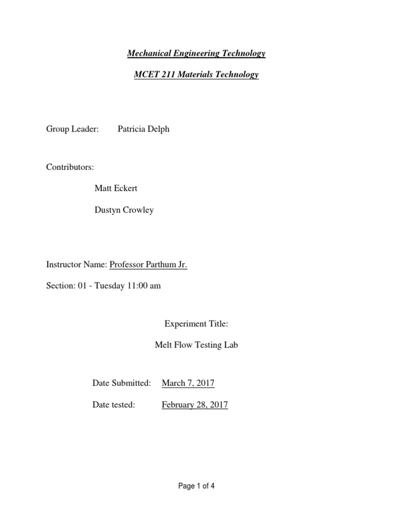 results for the areas of temperature, strength of polymers, and melt flow index. The materials