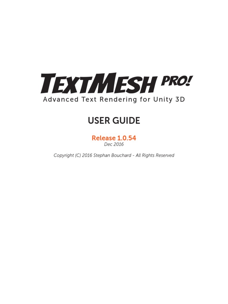 This User Guide was designed to provide TextMesh Pro users with a basic overview of the