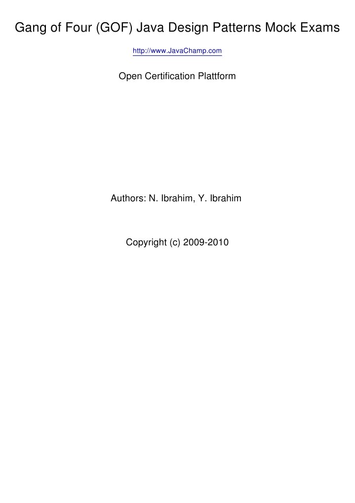 Gang of Four (GOF) Java Design Patterns Mock Exams