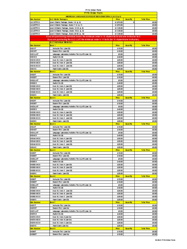 If you are purchasing the ALC LLAT, the minimum order is 11 texts (for 10 students/one instructor).