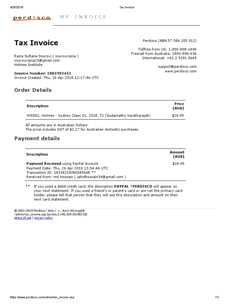 Tax Invoice Perdisco (ABN 57 086 205 012)